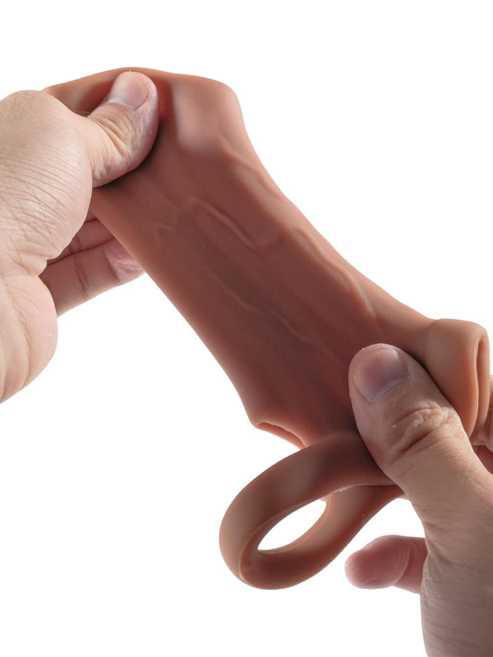 Elevate your sexual experience with the Maui 3.7" Length x 4.8" Girth Enhancing Sleeve for Men. This open penis sleeve adds 2 inches to your length and girth, providing increased pleasure for both you and your partner. Experience more satisfying female orgasms with this innovative enhancement.